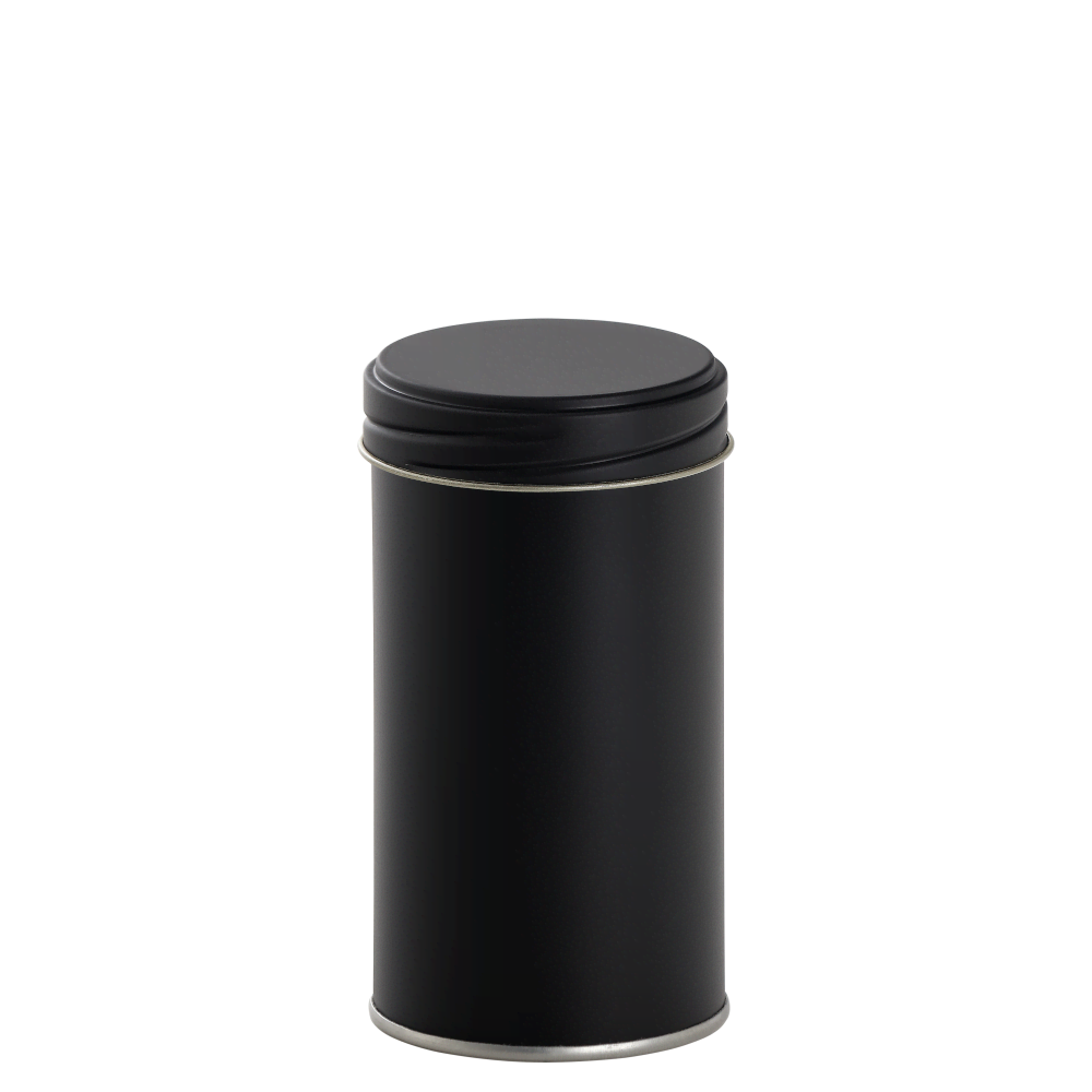 Round cans made of metal/tinplate inside BPA-NI in a modern black matt design with screw-cap and spice shaker insert. Elegant packaging solution for your high quality spices, herbs, teas and other dry food products. The robust and sustainable metal container is inside BPA-NI, unbreakable and impermeable to light and air, offering optimum protection for your valuable filling goods. If you opt for metal packaging, you are also doing something good for the environment: metal packaging made of tinplate is 100% recyclable if disposed of properly.
