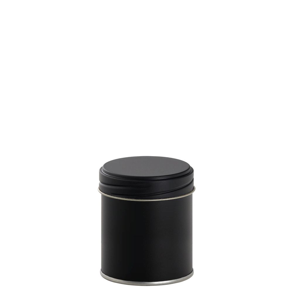 Round cans made of metal/tinplate inside BPA-NI in a modern black matt design with screw-cap, optionally with aroma inside cover. Elegant packaging solution for your high quality spices, herbs, teas and other dry food products. The robust and sustainable metal container is inside BPA-NI, unbreakable and impermeable to light and air, offering optimum protection for your valuable filling goods. If you opt for metal packaging, you are also doing something good for the environment: metal packaging made of tinplate is 100% recyclable if disposed of properly.
